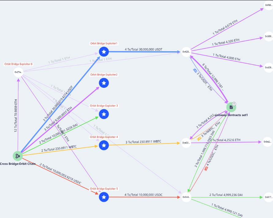 财经报道,据Beosin旗下EagleEye安全风险监控、预警与阻断平台监测显示,Orbit_Chain项目遭受攻击损失至少约为8000万美元,经Beosin Trace分析,黑客地址(0x27e2cc59a64d705a6c3d3d306186c2a55dcd5710)早在1天以前就发起了小规模的攻击,并且将盗取的ETH作为了本次攻击的其余5个地址的转账手续费来源。现项目方已经暂停跨链桥合约并与黑客进行沟通。