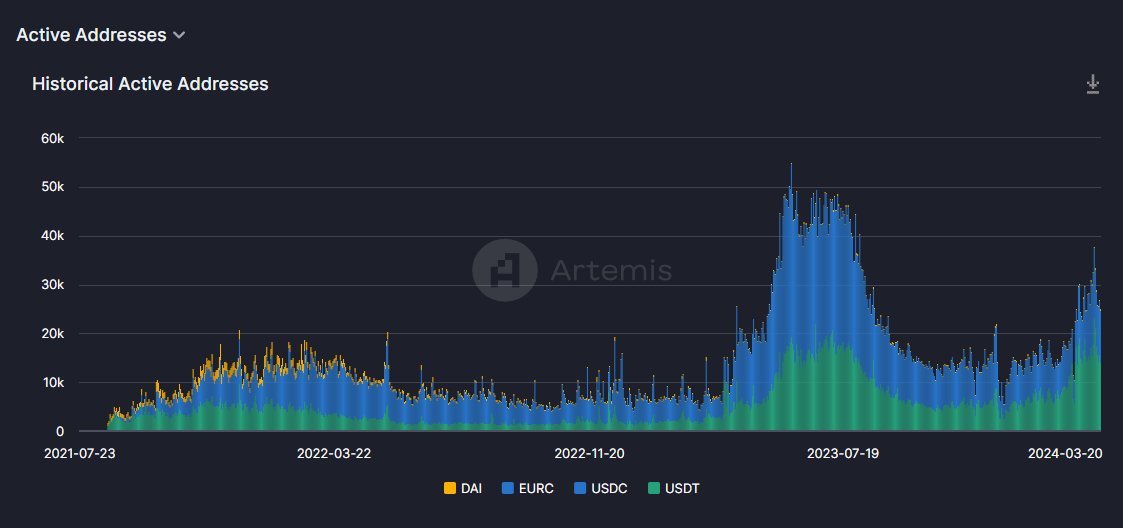 最近的数据表明,潮汐正在转向有利于雪崩的方向。雪崩观测到了自2023年以来稳定币活动的**水平。这表明网络上存在更多的活动和流动性。
