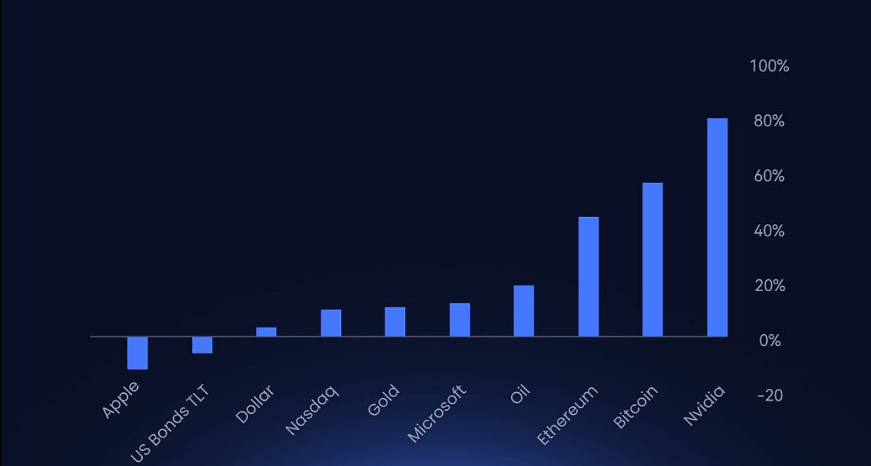 4月3日财经报道,Matrixport在社交媒体上发文称,大多数资产在第一季度表现强劲。其中:纳斯达克指数的回报率为10%,Nvidia的回报率为81%。大宗商品也表现强劲,石油和黄金的回报率分别为19%和11%,美国债券继续抛售。比特币和以太坊的回报率分别为57%和45%。