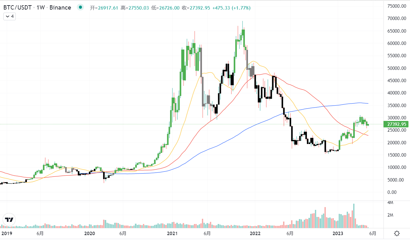 比特币最新价格行情为$27402.06,24小时的交易量为$647976万。比特币在过去24小时内增长了1.58%。市值排名为第1位,为5291.95亿USD。流通总量为1924.20万BTC,发行量为2100万BTC。